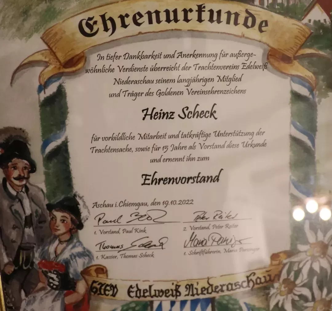 tatkräftiges Wirken im Verein, wurde Heinz Scheck, Träger des goldenen Vereinsehrenabzeichens, zum Ehrenvorstand ernannt.