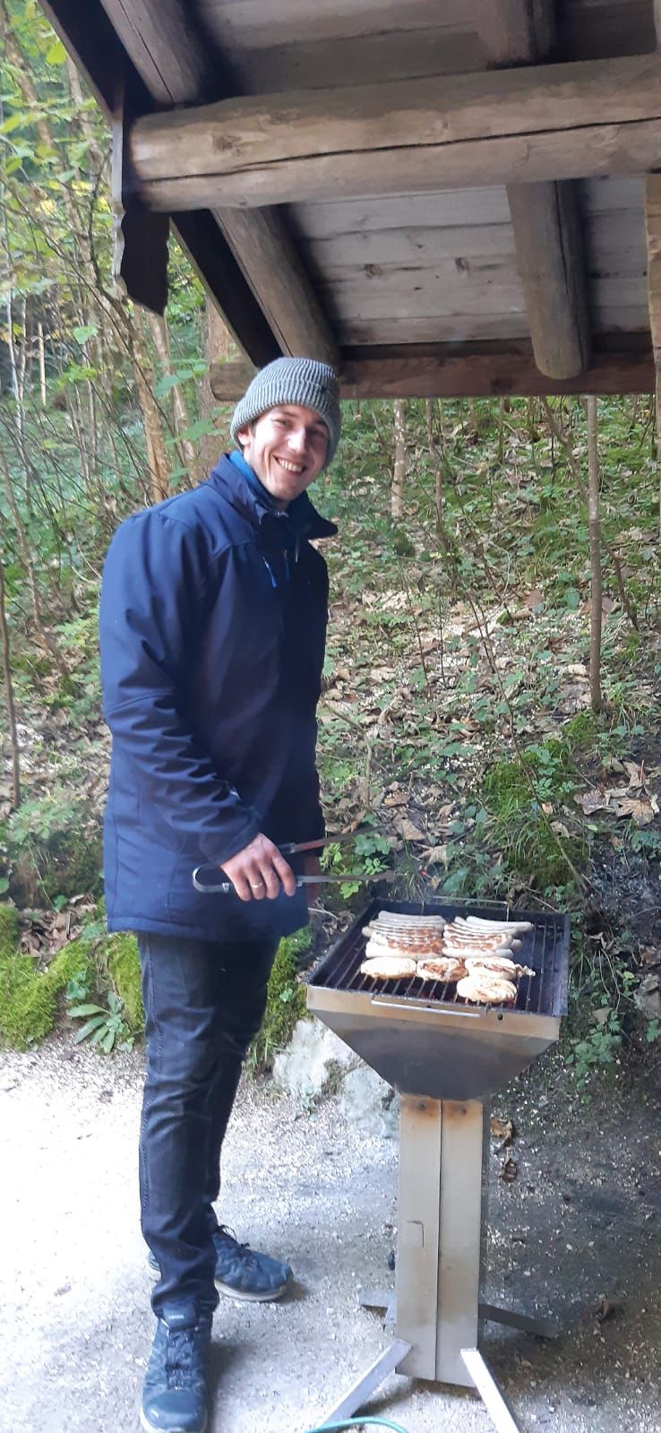 In einem gemütlichen Hütterl hams Brotzeit gmacht und zur Stärkung hod Grillwürstl gem.